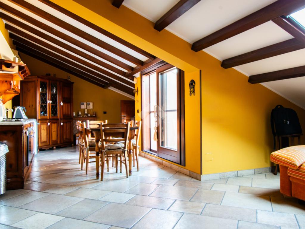Salendo, si entra nella mansarda, trasformata in una vera e propria zona living con cucina/taverna: uno spazio ideale per pranzi, cene e momenti di relax in compagnia. Qui il protagonista assoluto è il grande terrazzo panoramico, perfetto per vivere l’esterno tutto l’anno, godendo del sole. Completa il piano il secondo bagno.