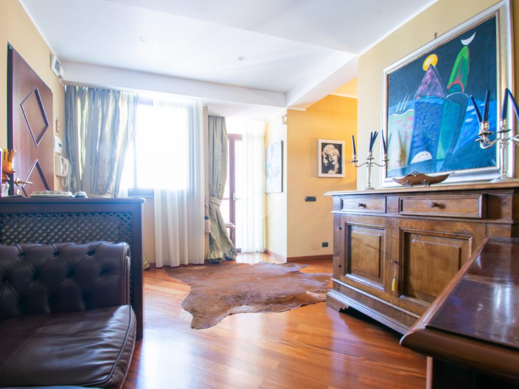 L’abitazione si sviluppa tra il sesto e il settimo piano, collegati internamente. Al livello principale troviamo un accogliente soggiorno, due camere da letto ben proporzionate ed il bagno, pensati per rendere la quotidianità pratica e funzionale.